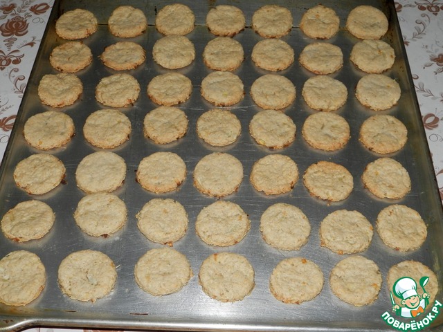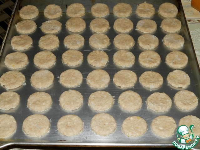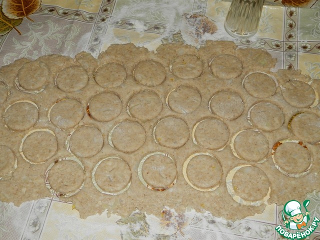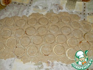 • Раскатать тесто на столе, присыпанным мукой, выдавить рюмкой кружочки.