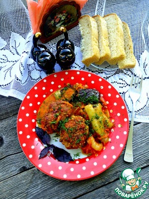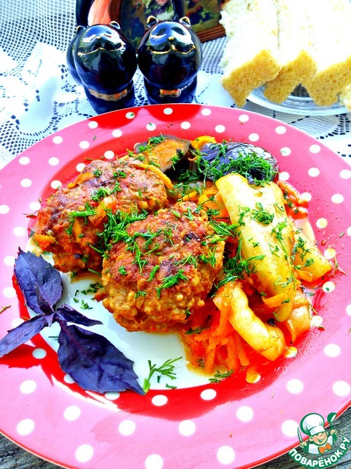 Ингредиенты для «Котлеты, тушенные с овощами»:
