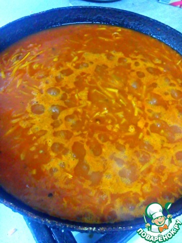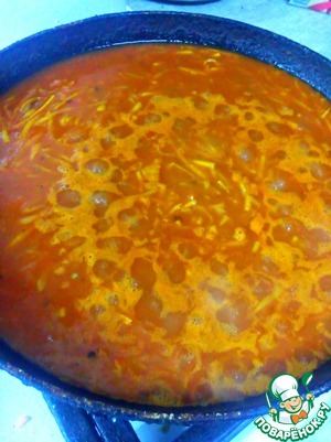 Добавить томатную пасту и воду (примерно 700-800 мл).