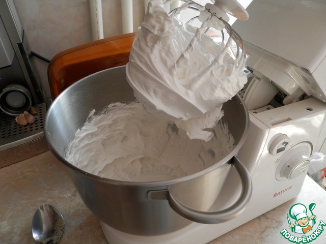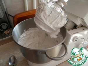 Теперь надо взбить белки до крепкой пены и постепенно добавлять сахар по одной ложке.