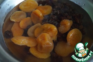 • Тщательно промытые изюм и курагу заливаем кипятком на 5 минут.
