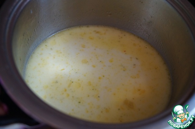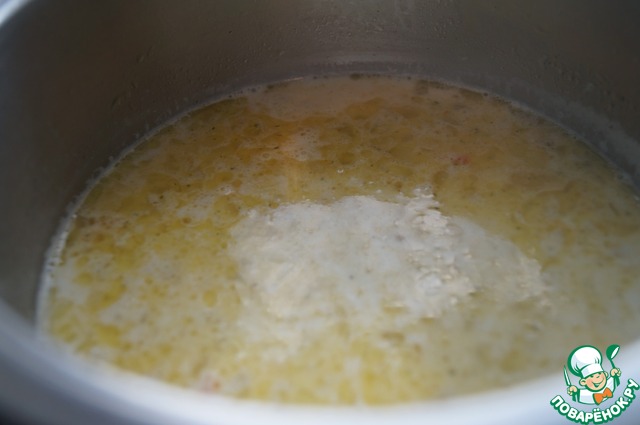 К готовым пассерованным овощам вливаем молоко и бульон.