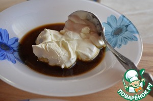 Сметану смешиваем с соевым соусом, посолим по вкусу (если мало соли)