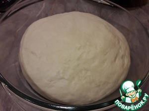 Готовое тесто накрыть пленкой или полотенцем и оставить в теплом месте на 40 минут для расстойки. -