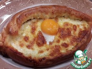В центр готового хачапури выложить желток и подпечь ещё минуты 3-4.