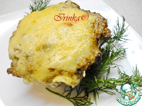 Сверху присыпаем тертым сыром и снова ставим в духовку до расплавления сыра и образования румяной корочки. -