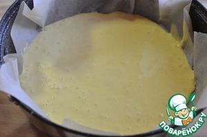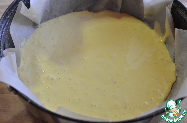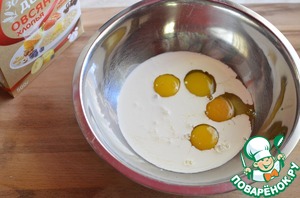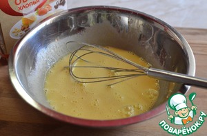 Сливки, сахар, яйца взбить в однородную массу венчиком.