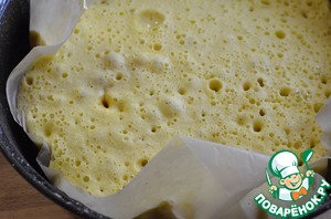 Немного остужаем и чуть теплым вареньем покрываем бисквит и сразу подаем к столу.