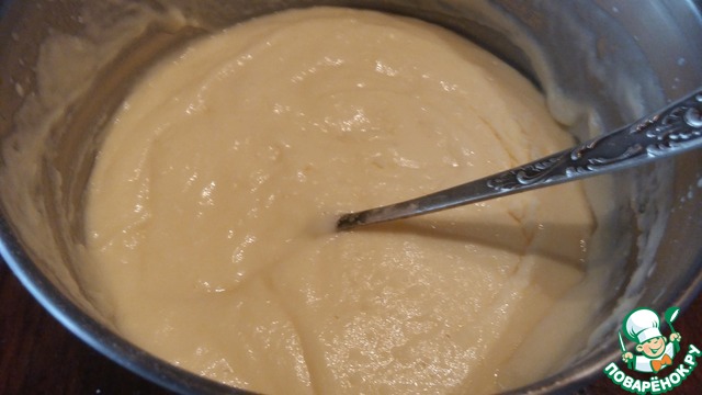 Постепенно подсыпая просеянную муку с разрыхлителем, аккуратно ложкой замесить тесто.