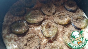 Чашу мультиварки смазать растительным маслом и вылить 1/2 теста. Присыпать его ревенем и орехами.