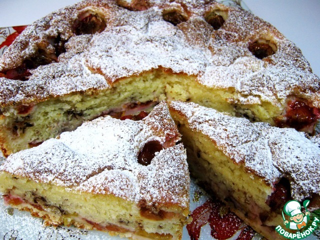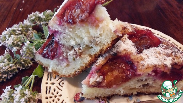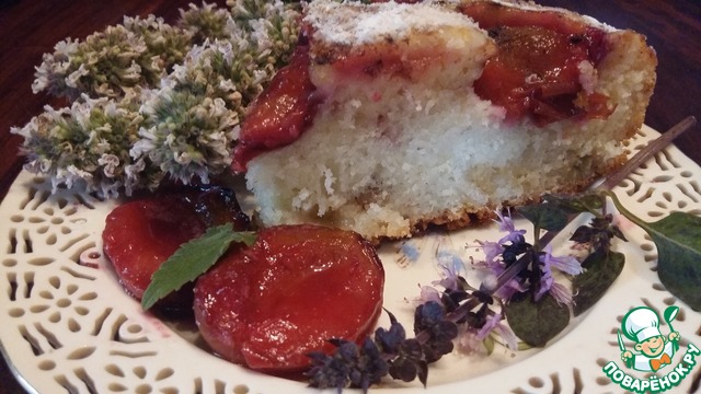 Рецепт «Воздушный пирог со сливами и ревенем»: