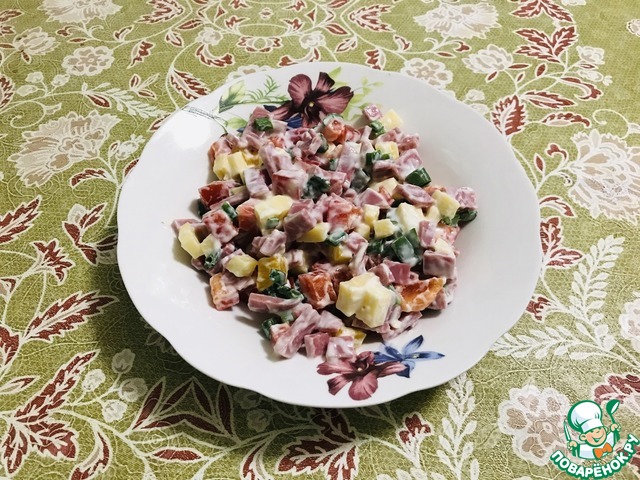 Довольно простой салат, но удивительно вкусный! Удачно сочетаются хорошая ветчина, сыр и два вида перца. Приправили майонезом – и получили очень быструю и незатейливую в приготовлении закуску. Если не лень, к этому салату можно приготовить домашний майонез. Но можно использовать и готовый, только ни в коем случае не «легкий»!
