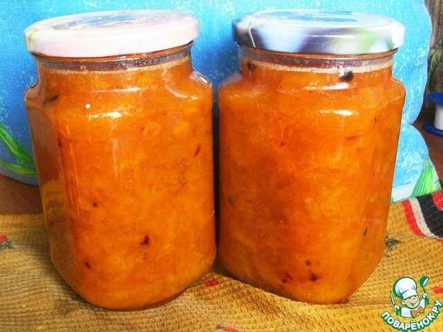 Горячим разложить по стерилизованным банкам и закатать. Перевернуть вверх дном, укутать.
