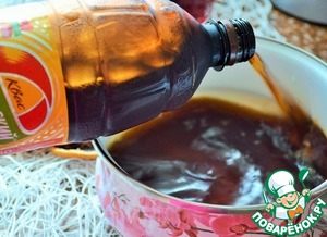 Влить вино, нагреть до 70 - 75 градусов и убрать с огня.