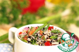 Овощи смешать с фасолью, чесноком, пропущенным через пресс, солью, перцами и кориандром.