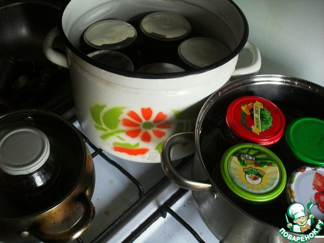 Дно кастрюли выстлать полотенцем и поставить банки, накрытые крышками.