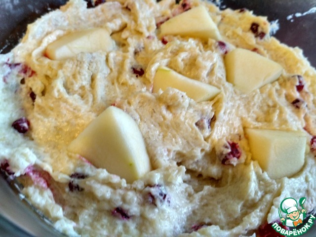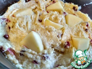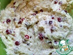 Ягоды (у меня замороженные - брусника), обдать кипятком, добавить в тесто и аккуратно перемешать.