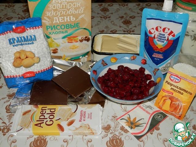 Удивительный сезон – лето! Разнообразие фруктов и ягод, выращенных на своём участке. Люблю я простые и быстрые рецепты, где не нужен миксер для приготовления теста. Предлагаю свой рецепт вкуснейших, нежных кексов, приготовленных из рисовых хлопьев, белого шоколада и начинкой из вишни. Кексы получаются очень сочные, нежнейшие, немного влажноватые и в то же время рассыпчатые! Порадуйте себя и своих деток необычной выпечкой! Насладитесь приятным завтраком на даче или дома!