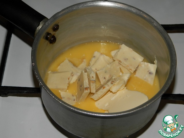 Чисто белого шоколада я не нашла в магазинах и пришлось купить белый шоколад с кокосом и миндалём.