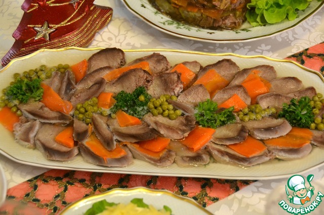 Ингредиенты для приготовления заливного из говяжьего языка.