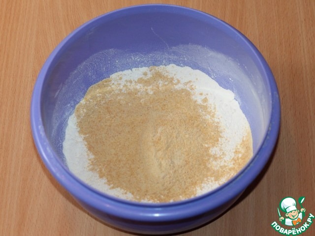1. Смешать пшеничную (150 г) и нутовую муку (50 г), просеять в миску.