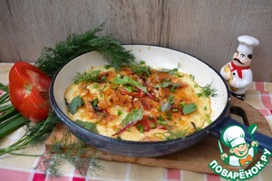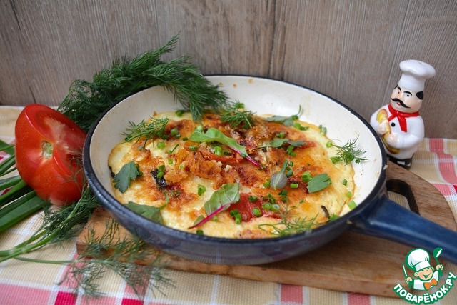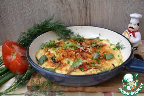 Мариш, принимай отчет. Отличный омлет получился, сытный. Переворачивать не стала, т.к. побоялась его поломать. Блендером не взбила, воспользовалась миксером. Спасибо тебе за рецепт!