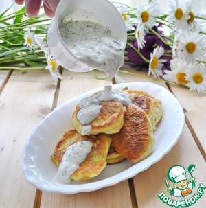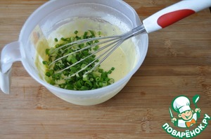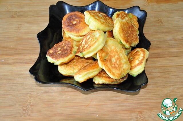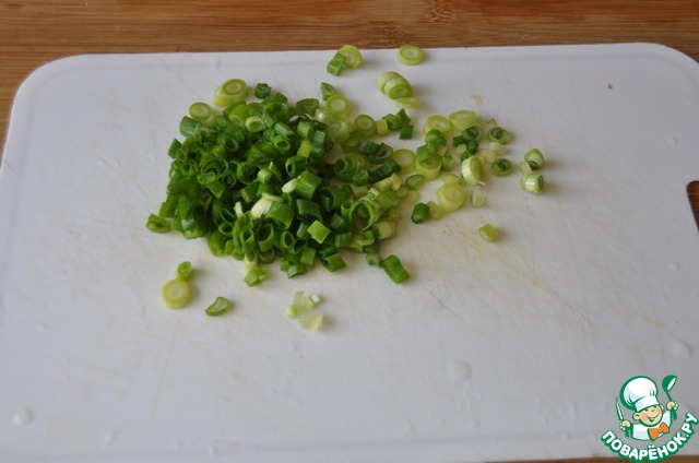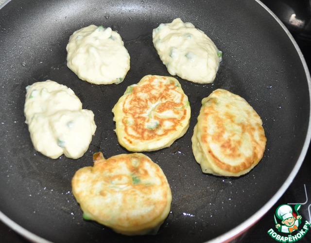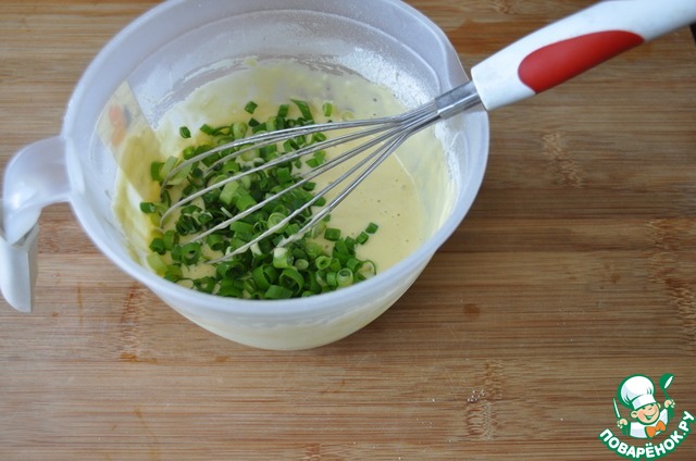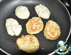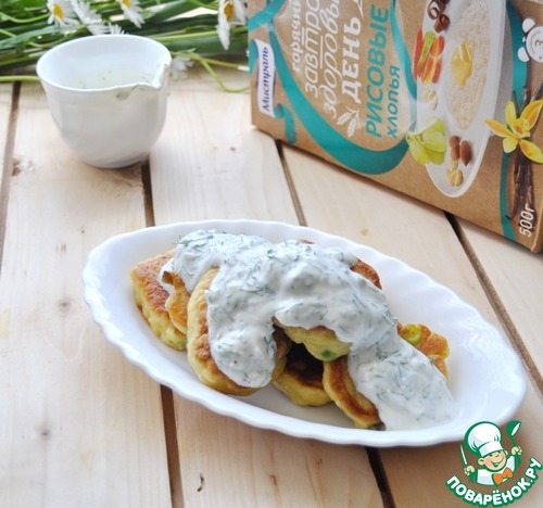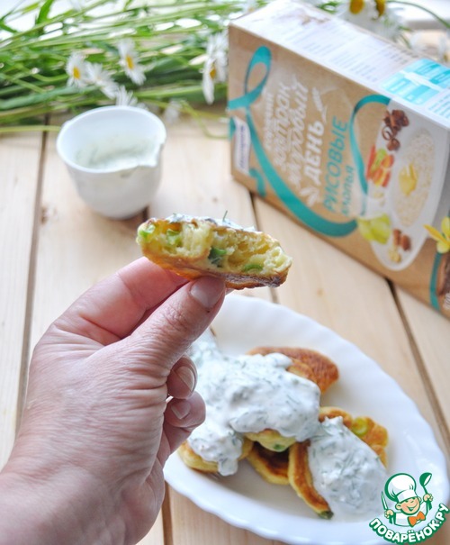 Рецепт «Оладьи с зеленым луком и рисовыми хлопьями»: