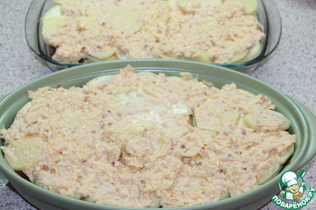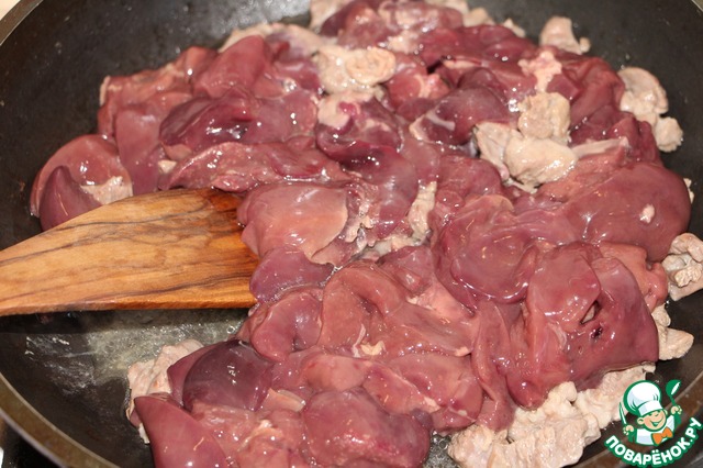 Вообще, первые два шага можно пропустить и мясо, и печень можно добавить в гратен в сыром виде. -