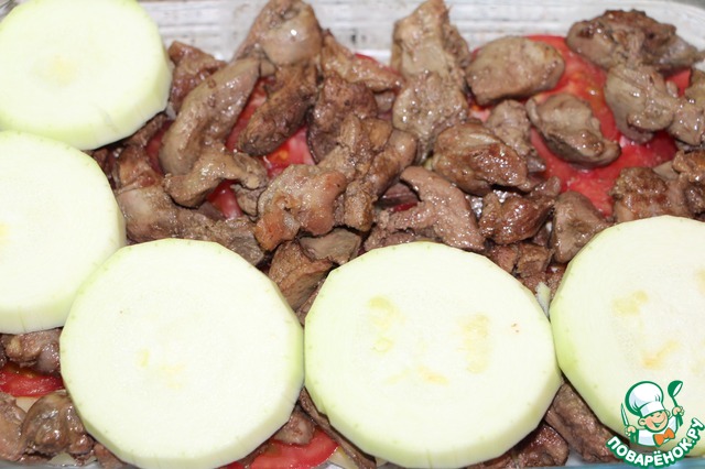 Ингредиенты для «Овощной гратен с куриной печенью»: