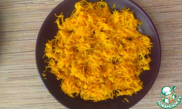 Морковь почистить, помыть, натереть на тёрке и подарить на растительном масле до полуготовности. Осудить.