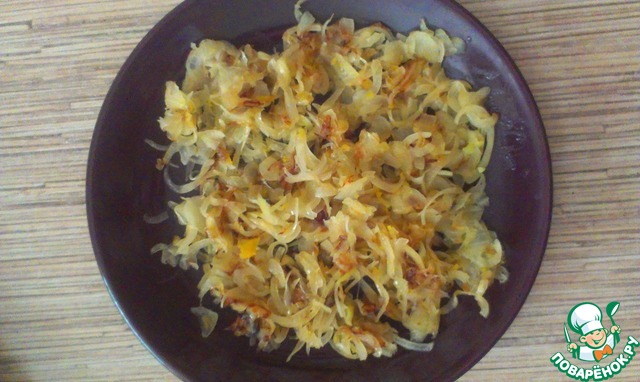 Репчатый лук почистить, помыть, порезать средними кусочками и обжарить отдельно от моркови до золотистого цвета. Остудить. Не зажарьте сильно, он должен размягчиться, а не хрустеть.