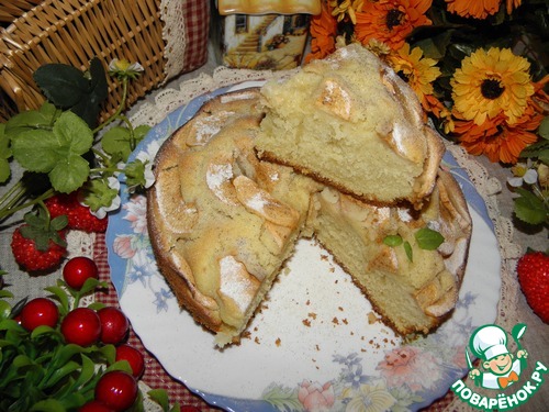 Ну кто бы отказаться смог! Сегодня с фруктами пирог! Воздушный, нежный очень он! Наполнит ароматом дом! Давайте пробовать друзья! К столу на чай зову вас я!