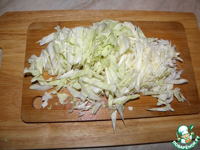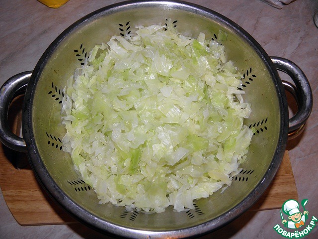 Капусту порубить. опустить в кипяток и варить минут 10