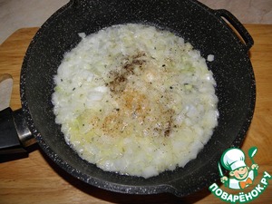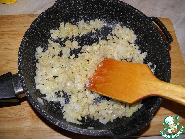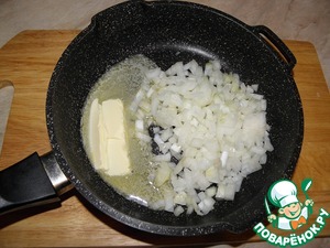 В сковороде растопить сливочное масло, добавить мелко нарезанный лук