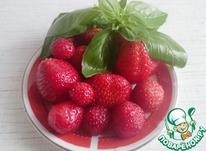 Клубника нарезается пополам или на четвертинки в зависимости от размера ягод, смешивается с листиками базилика, столовой ложкой сахара и оставляется на 15 минут, после чего базилик в оригинальном рецепте удаляется, я же, как обожатель базилика, оставила его в клубнике!