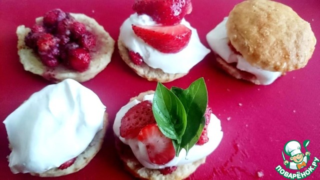 Рецепт «Мини-пирожные с клубникой и базиликом»: