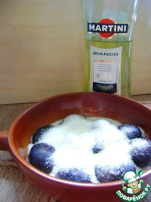 Влить вермут или сладкое вино и оставить часа на три-четыре настояться. -