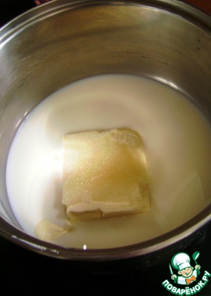 Вскипятить смесь воды с молоком и маслом, добавив соль и сахар. -