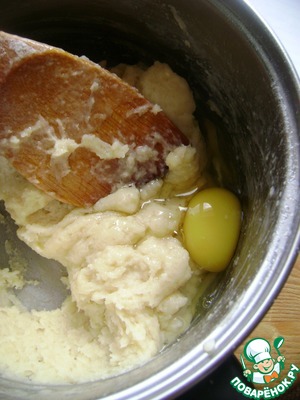 Проварить тесто минуту-другую, все время помешивая крепкой деревянной лопаточкой, чтобы оно слегка подсохло и начало отставать от дна и стенок кастрюли.