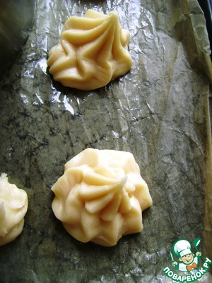 Еще теплое тесто переложить в кондитерский мешок с зубчатой насадкой и отсадить круглые пирожные размером с яйцо.