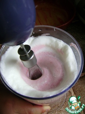 Продолжая взбивать на высокой скорости, тонкой струйкой вливать в белки кипящий сироп.