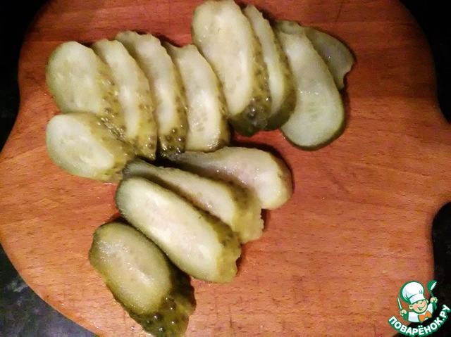 Огурчик накрываем, опять же картофельной массой. Накрываем крышкой сковороду и обжариваем драники с обеих сторон до золотистого цвета.