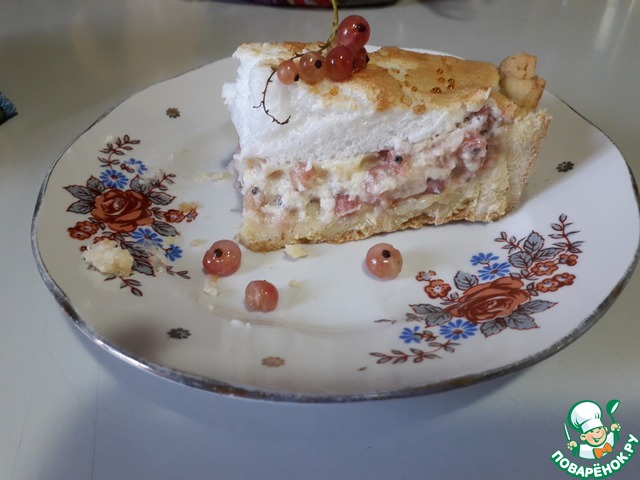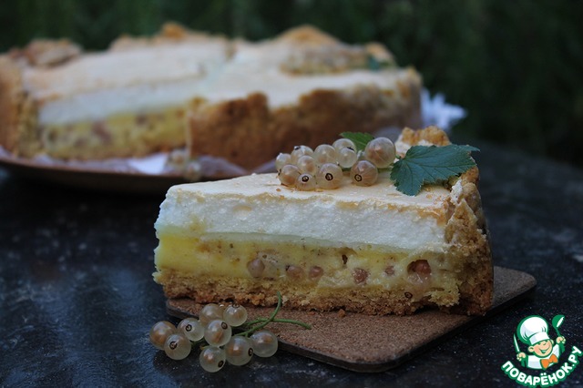 Выпечка со свежими ягодами это всегда чудесно. Вкусно, сочно, ароматно. Песочное тесто, кремовая кисло-сладкая начинка и практически невесомая меренга... Не пирог - а мечта!!! На сайте очень мало рецептов именно с белой смородиной, поэтому, если вы не знаете куда ее пристроить, не проходите мимо. Уверена, ваши родные оценят этот пирог по достоинству. Угощайтесь!!!