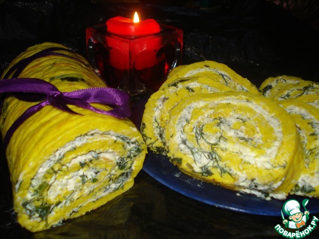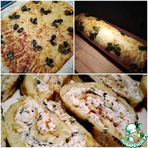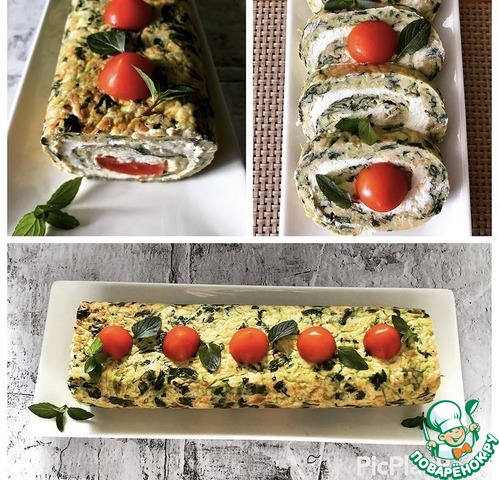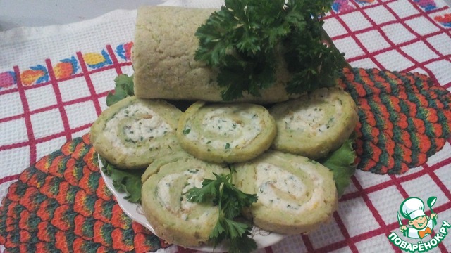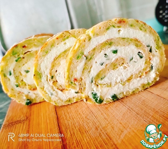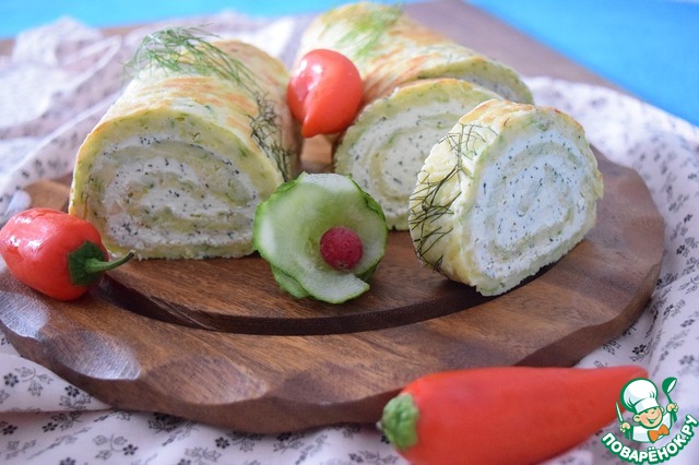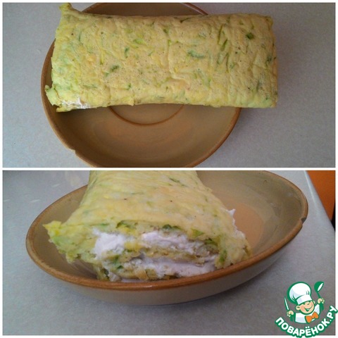 Рецепт «Кабачковый рулет с творожной начинкой»: