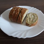 Выложить аккуратно тесто, чтобы не сбить рисунок из листиков петрушки. Разровнять тесто по поверхности.