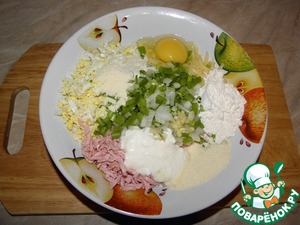 Затем добавить сметану, сырое яйцо, муку и манку