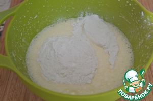 Затем всыпать крахмал и все тщательно перемешать венчиком. -