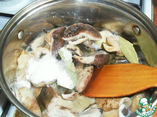 Перед самым выключением огня влить уксус и перемешать хорошенько грибы. -