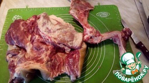 • Затем уменьшить огонь до 160 градусов и запекать еще 3,5 - 4 часа. Я, к сожалению, совсем забыла про морковь, и она у меня превратилась в чипсы. С готовой лопатки снять кожу и мелко ее нарезать.