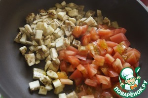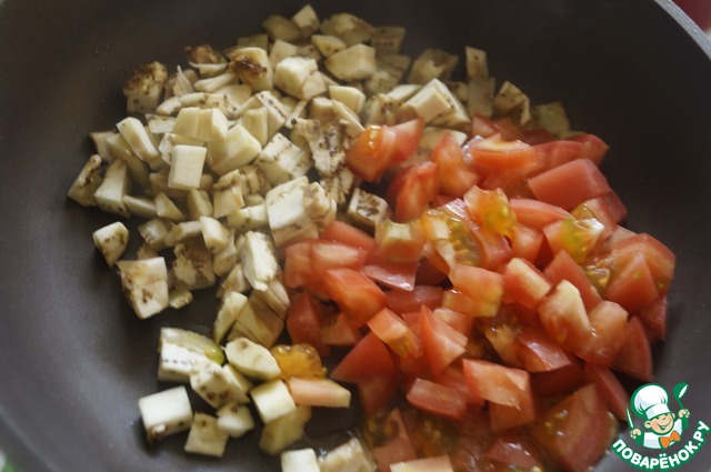 Обжарить баклажаны и помидор на растительном масле до мягкости.